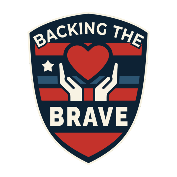 Our shield reflects the protection and service of our heroes; the lifting hands and heart embody community care and compassion. The thin blue line honors law enforcement, and the single star signifies unity and guiding values. Together, they form Backing the Brave—a promise to stand behind those who stand for us.